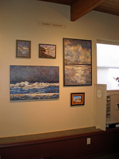 Here are some of my seascapes hanging at Port Townsend Gallery. It is always good to get the work out of the studio and into the public sphere; it changes the work when it is no longer exclusively mine. This works when I post things online as well, but it is interesting to see the work in different lighting.