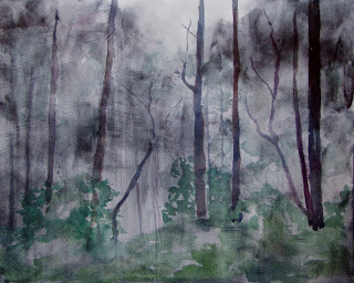 This piece began as a failed watercolor; it was not very interesting. I added layers of charcoal and clear gesso to the piece which gave it depth and the illusion of having detail. The final coat is an oil glaze to further enrich the surface.