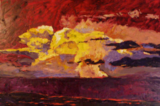New work! This is a 60″x48″ oil on canvas. The image is from a storm cloud in Northern Colorado last June; not an epic storm, just a pretty one.
